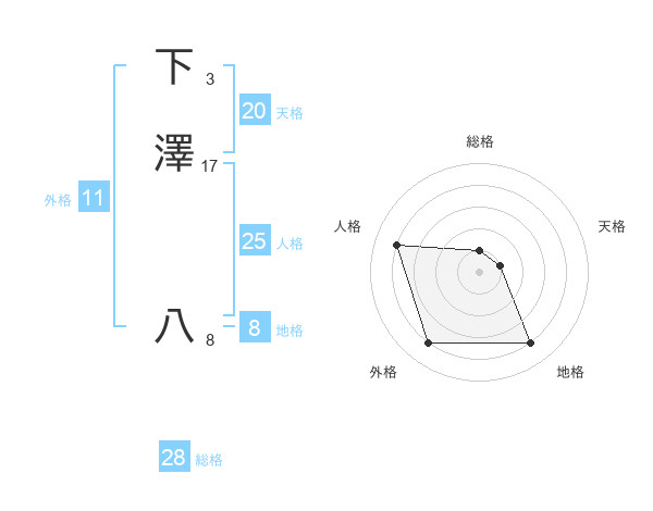 下澤 八さんの天格は20画の1点!