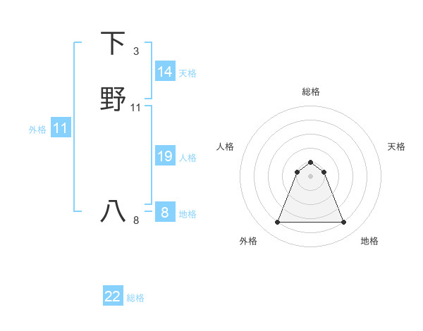 下野 八さんの総格は22画の1点!