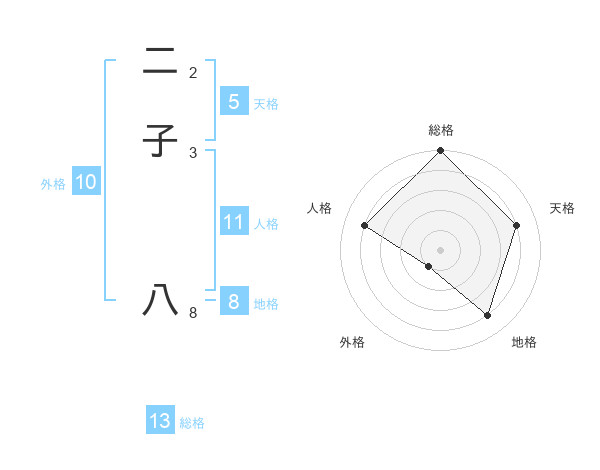 二子 八さんの総格は13画の5点!