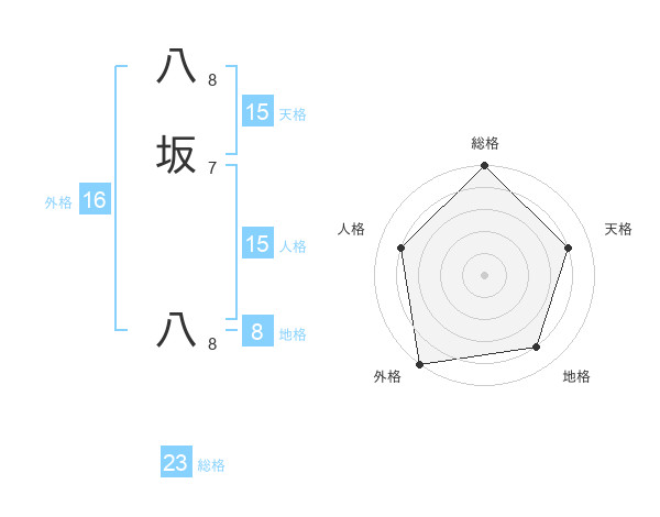 八坂 八さんの外格は16画の5点!
