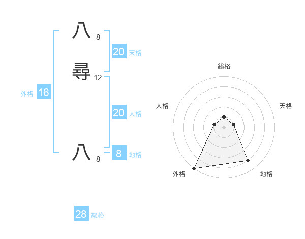 八尋 八さんの天格は20画の1点!