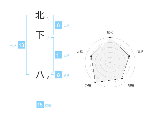 北下 八さんの外格は13画の5点!