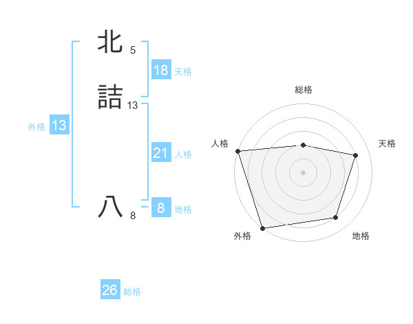 北詰 八さんの天格は18画の4点!