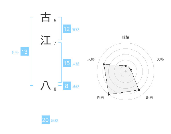 古江 八さんの外格は13画の5点!