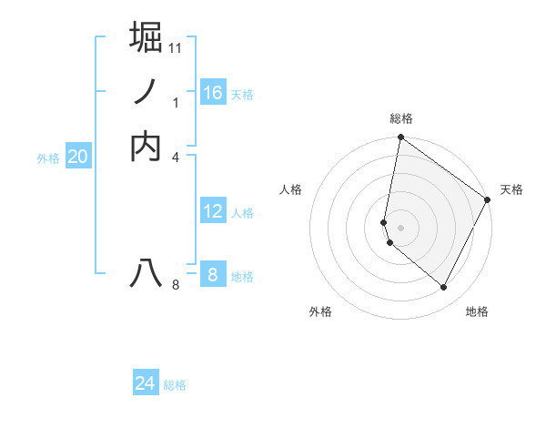 堀ノ内 八さんの総格は24画の5点!