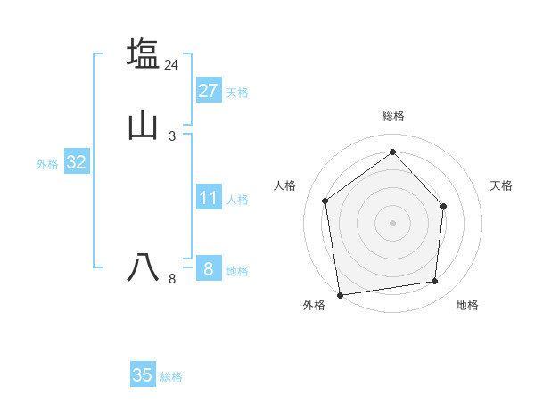 塩山 八さんの総格は35画の4点!