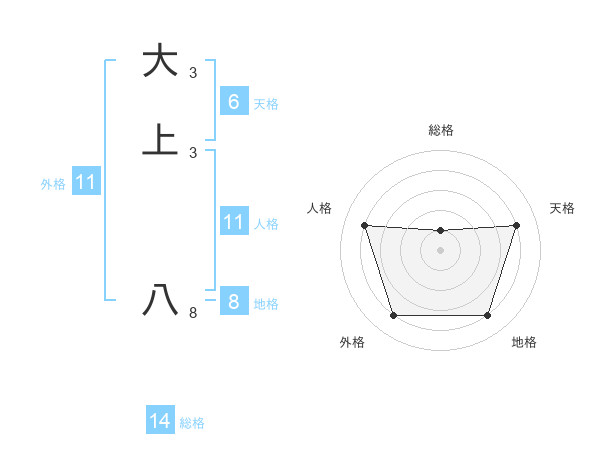 大上 八さんの外格は11画の4点!