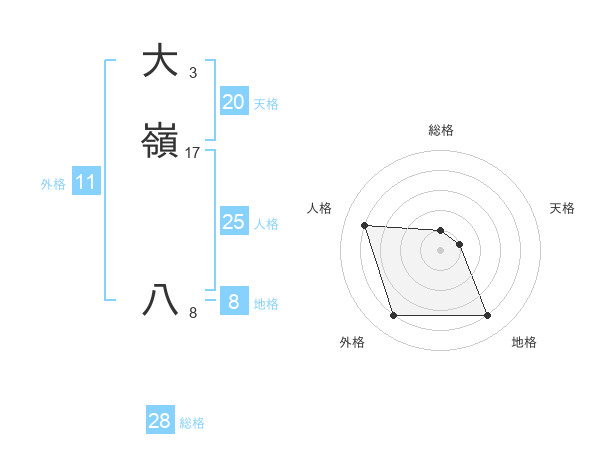 家系が持つ宿命的な運勢を表します。祖先から受け継いだ苗字ですので自分の力が及びません。家柄を象徴します。
