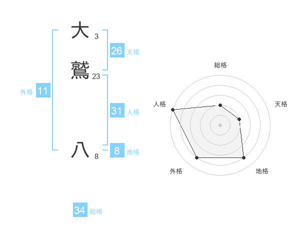 大鷲 八さんの人格は31画の5点!