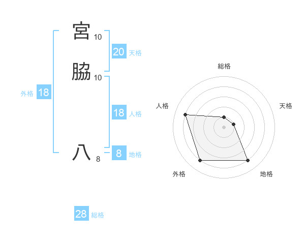 宮脇 八さんの天格は20画の1点!