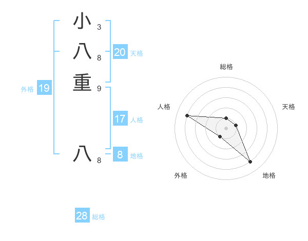 小八重 八さんの天格は20画の1点!