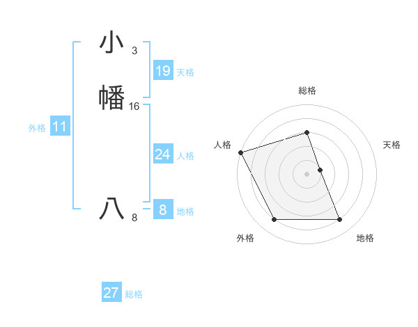 小幡 八さんの総格は27画の3点!
