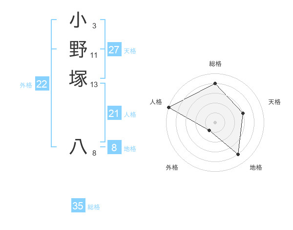 小野塚 八さんの総格は35画の4点!