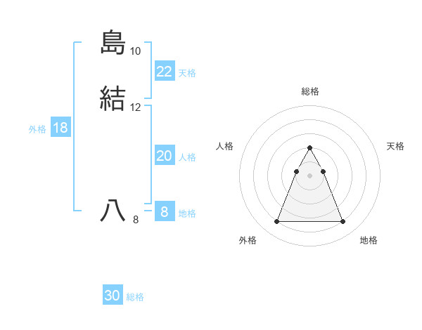 島結 八さんの総格は30画の2点!