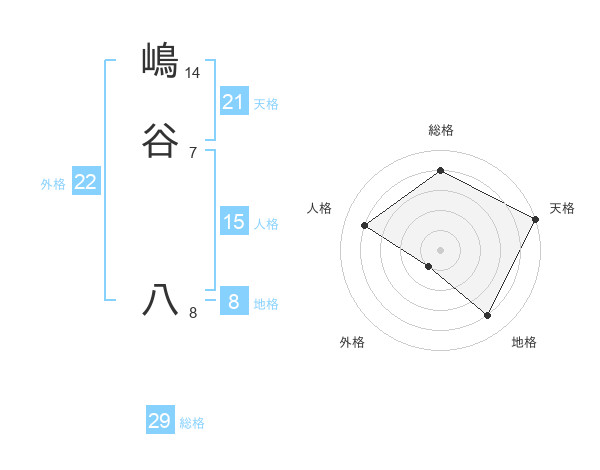 嶋谷 八さんの総格は29画の4点!