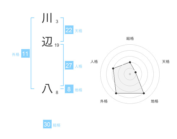 川辺 八さんの総格は30画の2点!