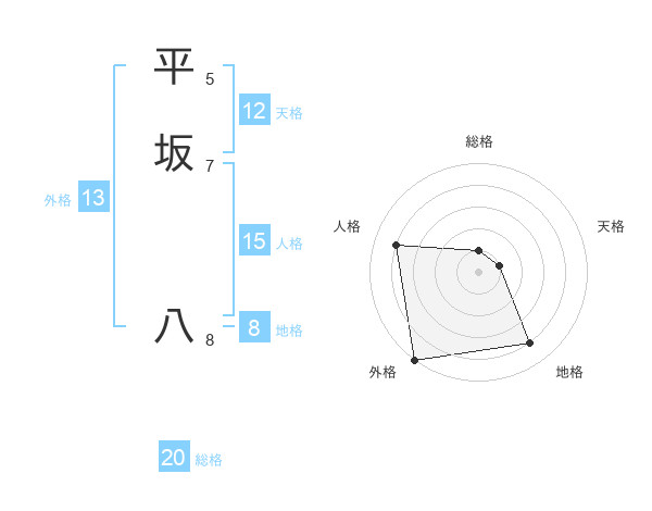 平坂 八さんの外格は13画の5点!