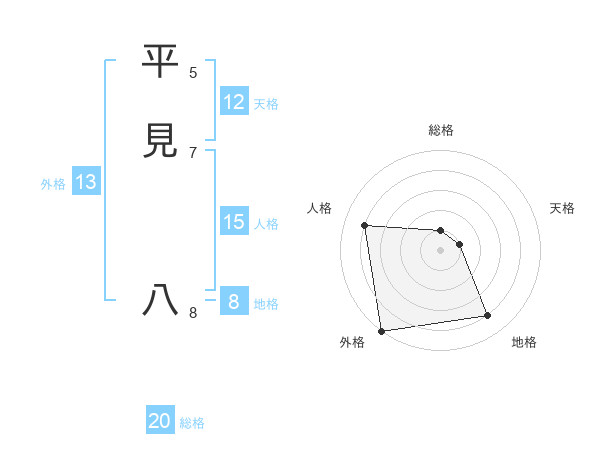 平見 八さんの総格は20画の1点!