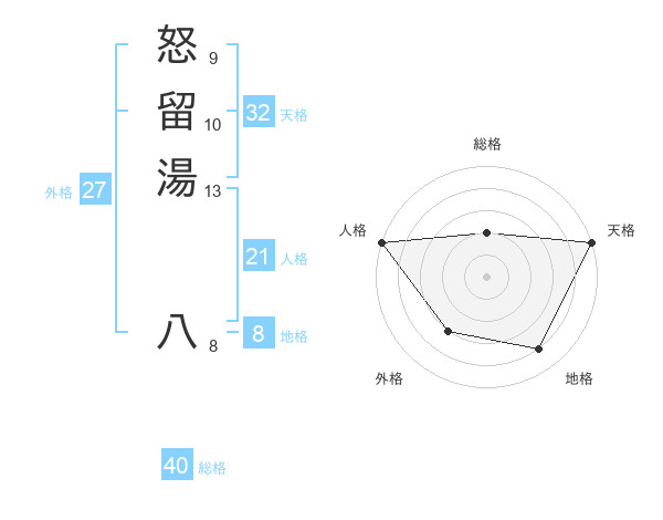 怒留湯 八さんの外格は27画の3点!