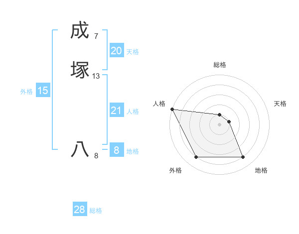 成塚 八さんの人格は21画の5点!