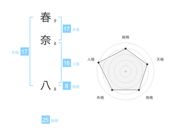 春奈 八さんの天格は17画の4点!