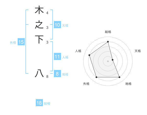 木之下 八さんの総格は18画の4点!