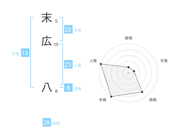 末広 八さんの外格は13画の5点!
