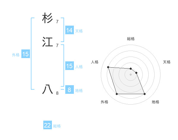 杉江 八さんの総格は22画の1点!