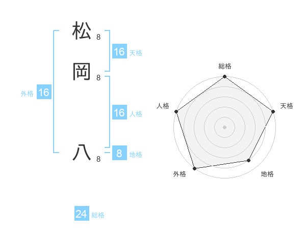 松岡 八さんの人格は16画の5点