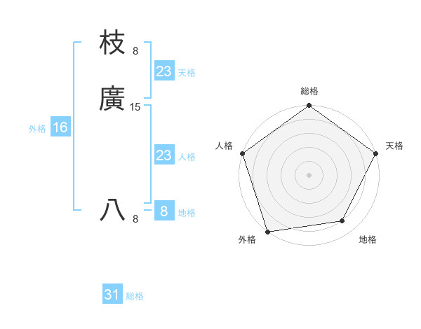 枝廣 八さんの総格は31画の5点!