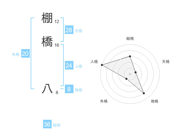 棚橋 八さんを姓名の画数から五運を鑑定