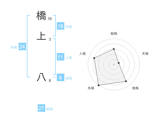 橋上 八さんの総格は27画の3点!