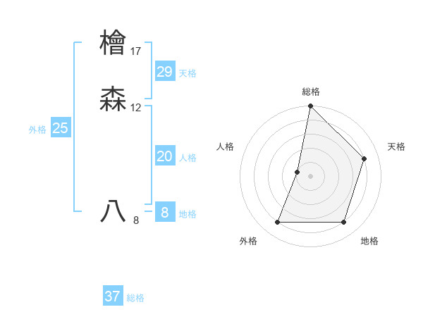 檜森 八さんの総格は37画の5点!