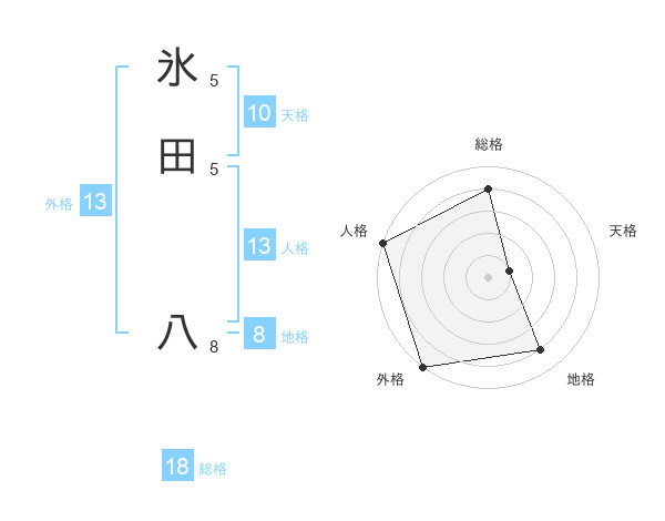 氷田 八さんの外格は13画の5点!