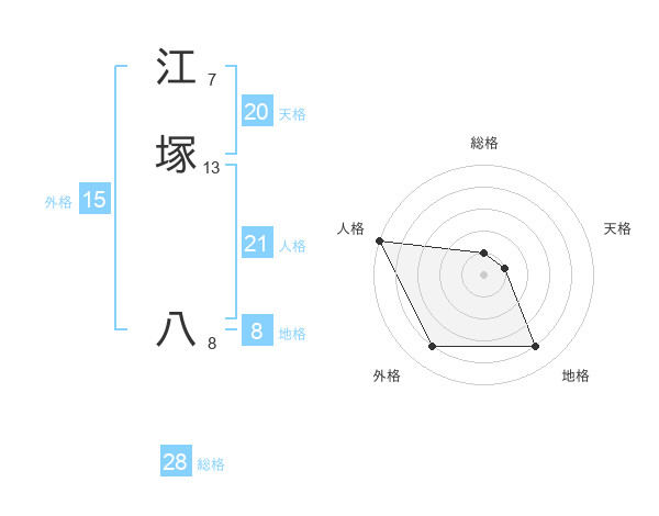 江塚 八さんの総格は28画の1点!