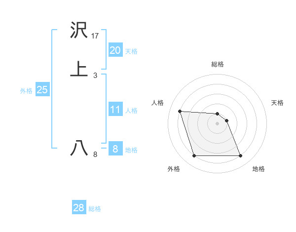 沢上 八さんの外格は25画の4点!