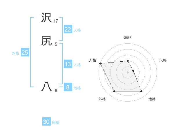 沢尻 八さんの外格は25画の4点!