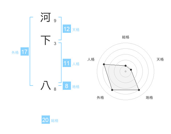 河下 八さんの外格は17画の4点!