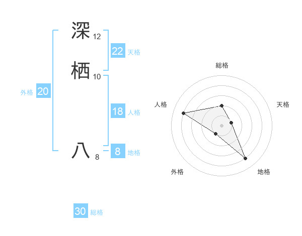 深栖 八さんの総格は30画の2点!
