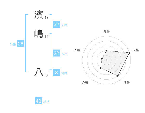 濱嶋 八さんを姓名の画数から五運を鑑定