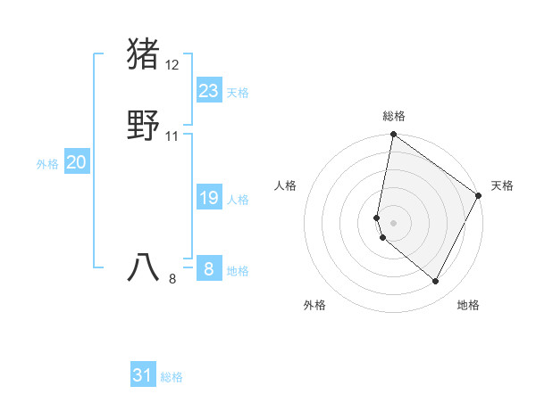 猪野 八さんの総格は31画の5点!