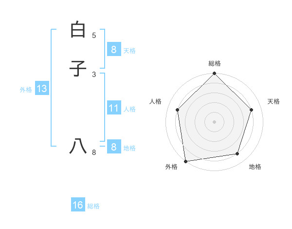 白子 八さんの外格は13画の5点!