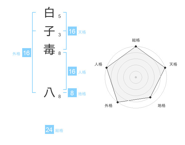 白子毒 八さんの外格は16画の5点!
