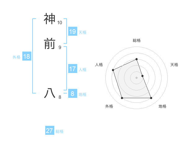 神前 八さんの外格は18画の4点!