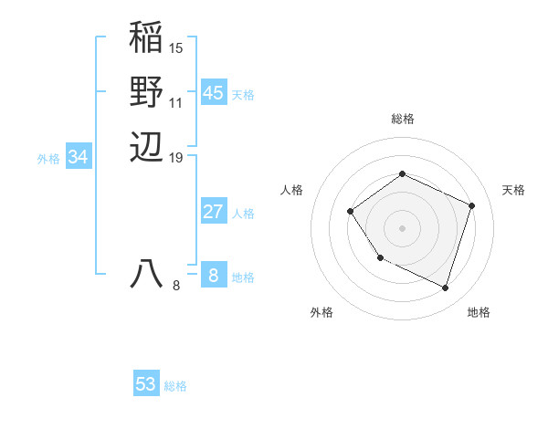 稲野辺 八さんの総格は53画の3点!