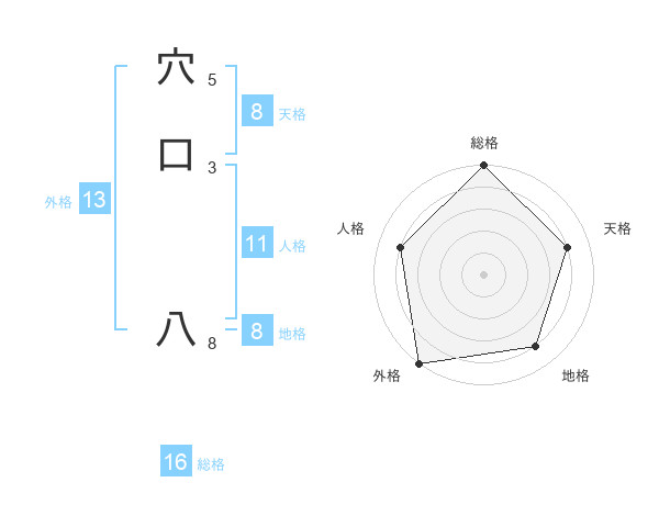穴口 八さんの外格は13画の5点!