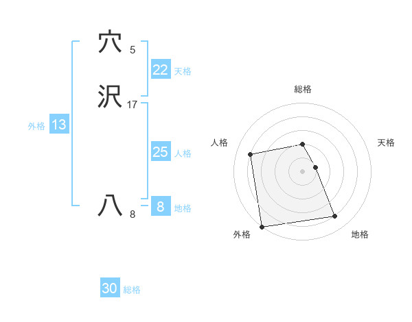 穴沢 八さんの外格は13画の5点!