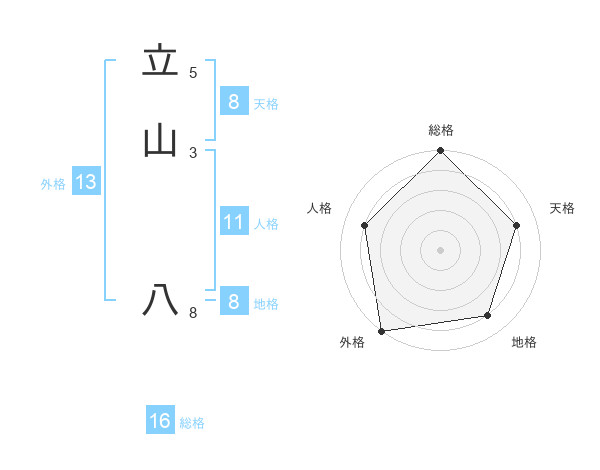 立山 八さんの外格は13画の5点!