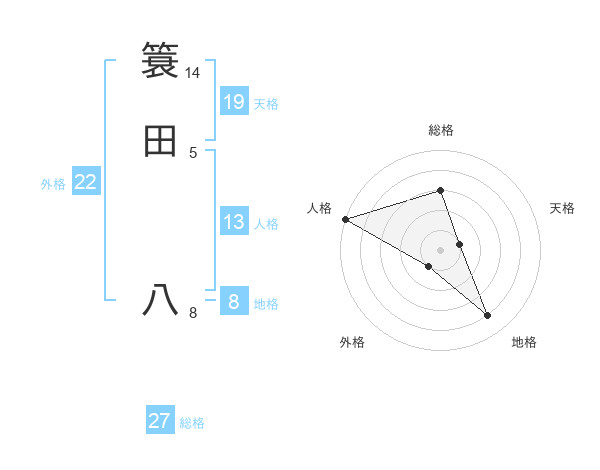 簑田 八さんの外格は22画の1点!