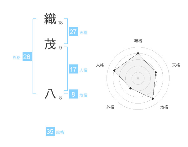 織茂 八さんを姓名の画数から五運を鑑定